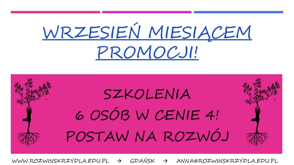 Szczególnie polecamy szkolenia znajdujące się w zakładce: SZKOLENIA –> TERMINY SZKOLEŃ, ale promocja dotyczy wszystkich szkoleń (OFERTA SZKOLEŃ).